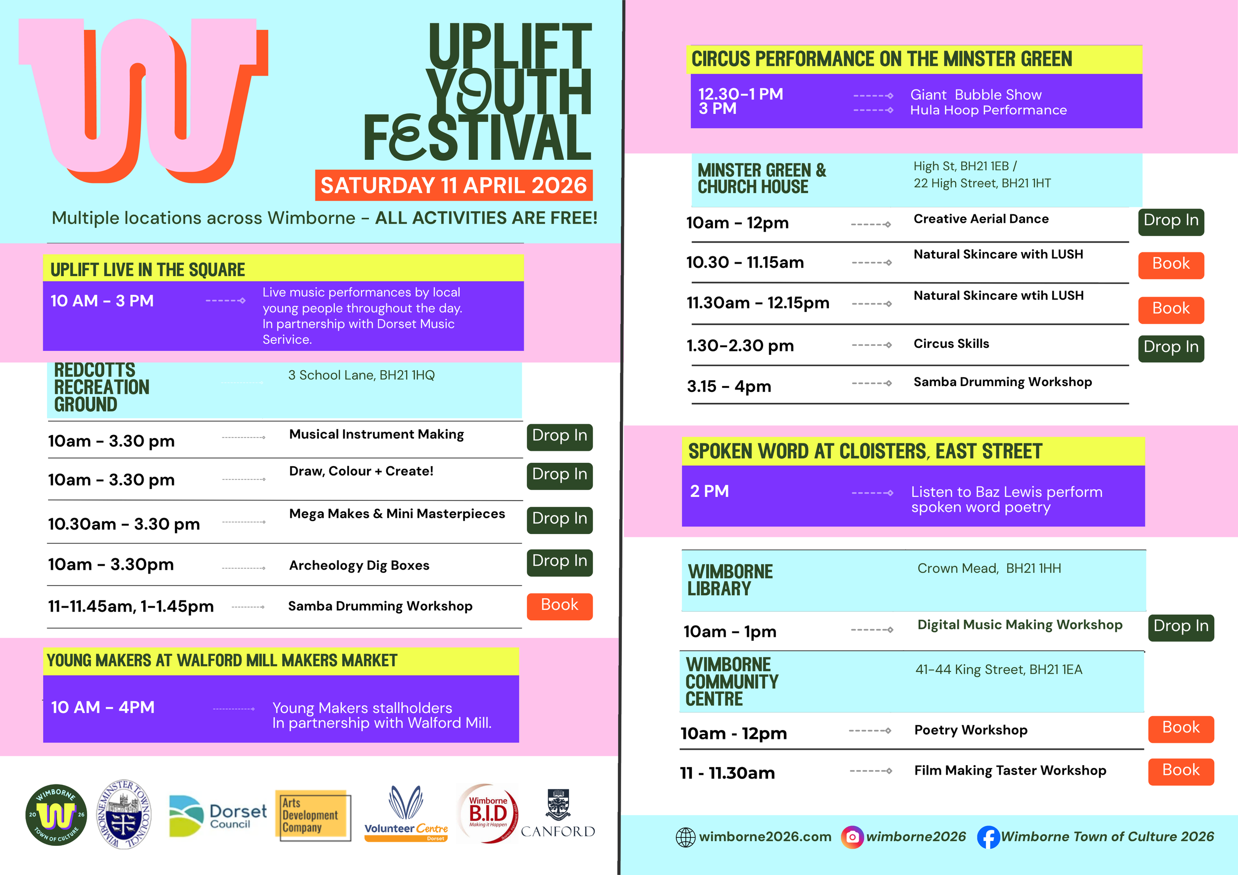 Taking place 6–19 April, UPLIFT is a youth-led programme of performances, workshops, exhibitions and creative activity happening across Wimborne during the Easter holidays.